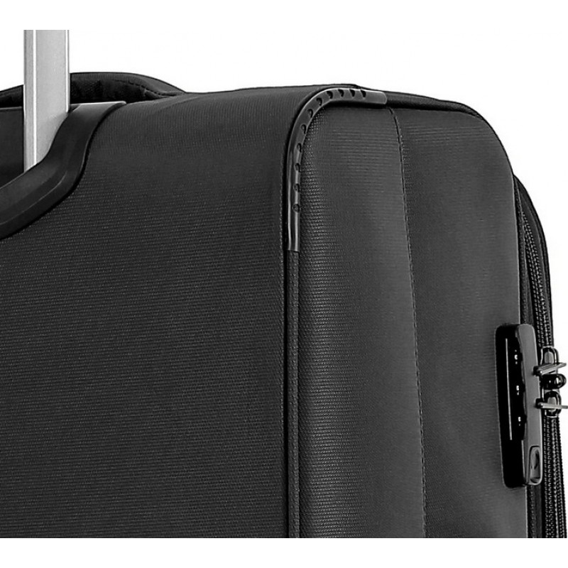 • Снаружи карман для мелких предметов и большое отделение защищенное от попадания воды, закрываются нак молнии. На стенке вшитая дорожная бирка. Накладной кодовый замок. Внутри: ремни-фиксаторы, на крышке сетчатое отделение на молнии.