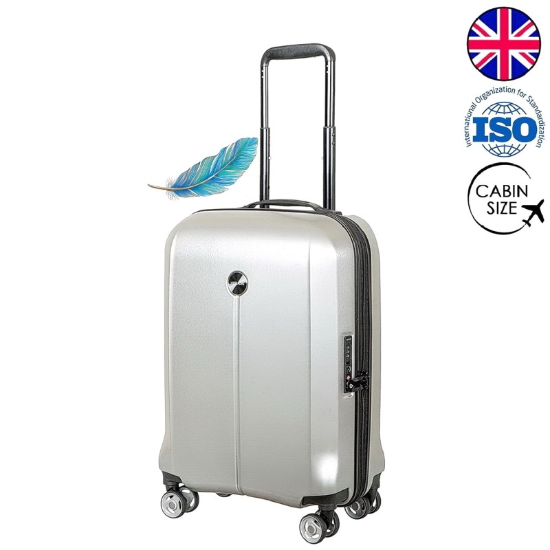 Чемодан 100% поликарбонат "Verage" HOUSTON cеребристый металлик, ручная кладь S+ (38/52л)