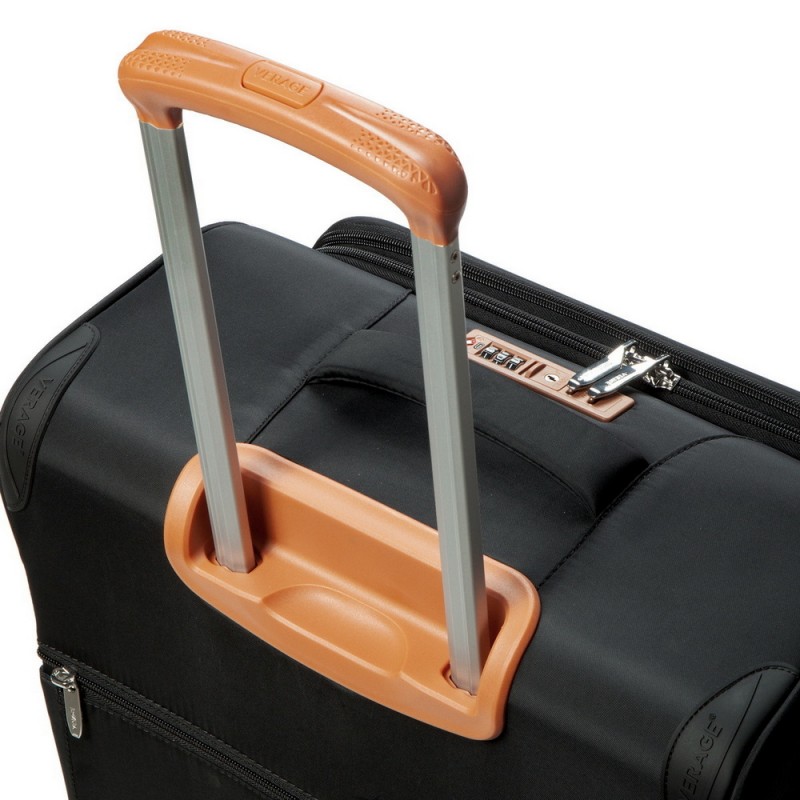 • 4 двойных, бесшумных, усиленных колеса “утопленных” в корпус с покрытием из термополиуретана. Корпус закрывается на двухстороннюю безопасную молнию системы “anti-thief” – защита от вскрытия снаружи и случайного открытия изнутри сданного в багажное отделение чемодана, разработанный Verage кодовый замок "TSA" с защитой от взлома. Внутренний расширитель: + 25% объема для багажа. Верх и низ чемодана защищен прорезиненными накладками.