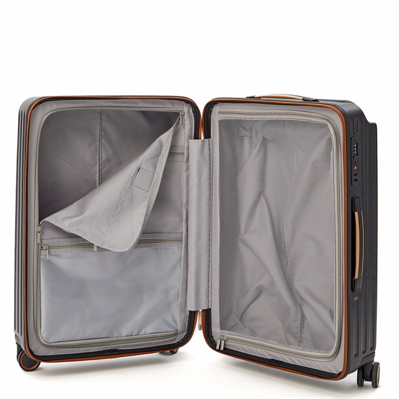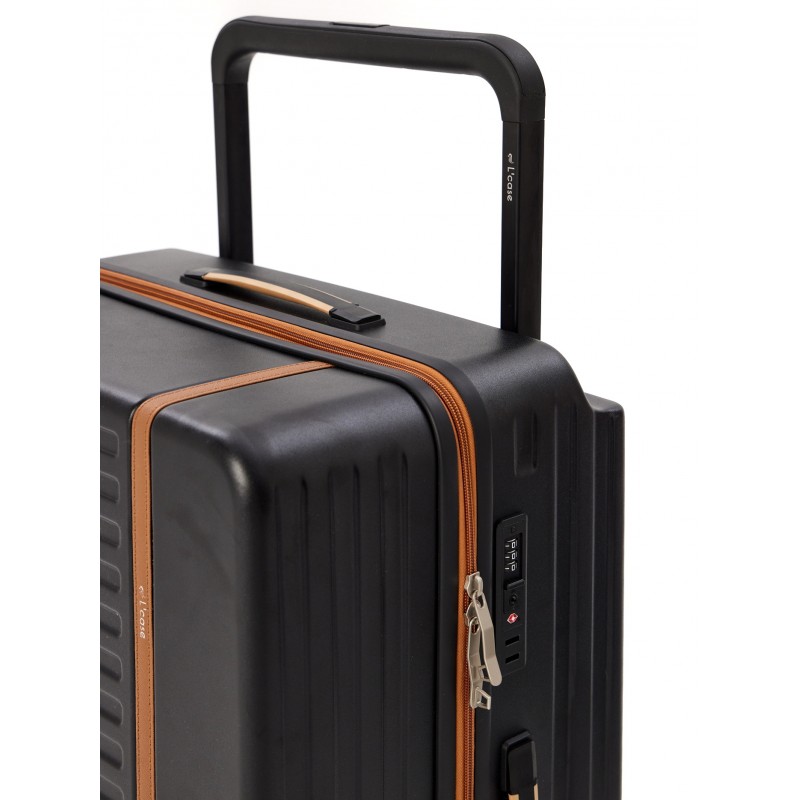 • Материал корпуса – поликарбонат. Мощная, широкая, телескопическая ручка новой конструкции с расположением по ширине корпуса чемодана, обеспечивает максимальную защиту от повреждений, 8 колес оборотом 360°, встроенный кодовый замок с функцией "TSA". Верхняя и боковая ручки с эластичными вставками для комфортной переноски.