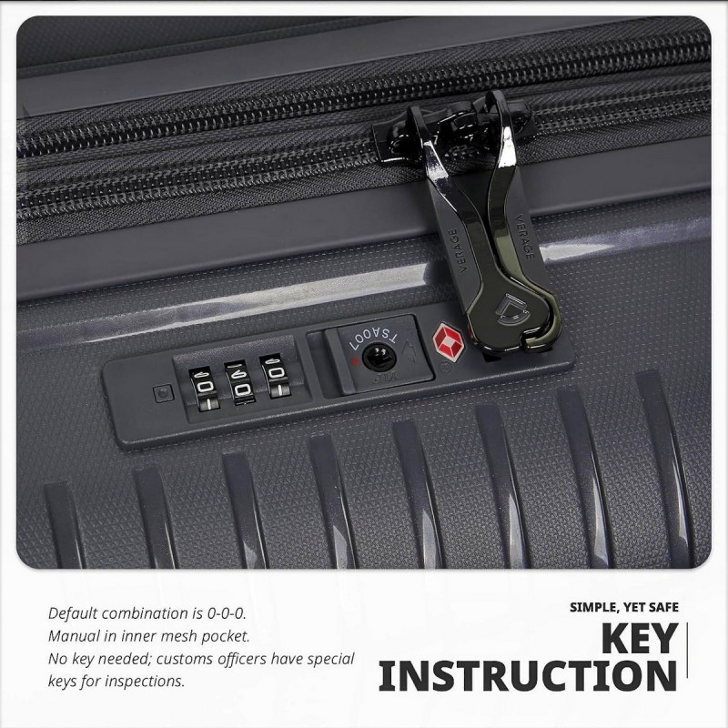 Прочность твердой оболочки несравнимо хороша, и благодаря новому дизайну, который делает твердую оболочку легче, они пользуются большим спросом. Verage гарантирует, что большая часть нашего багажа оснащена 3-значным кодовым замком TSA, так что только у вас есть доступ к вашим вещам.