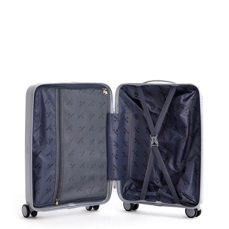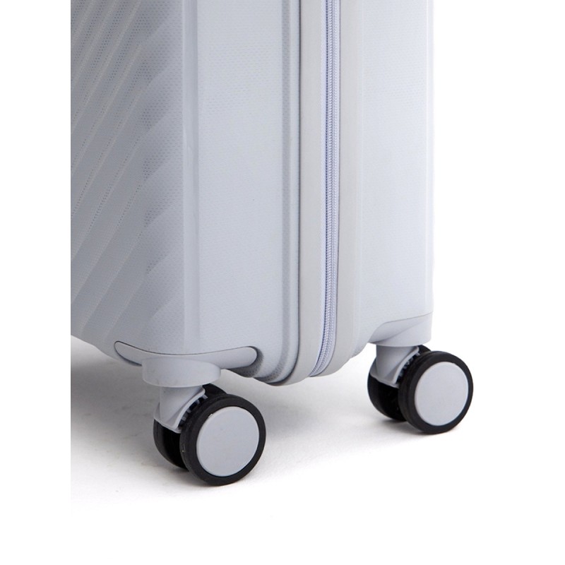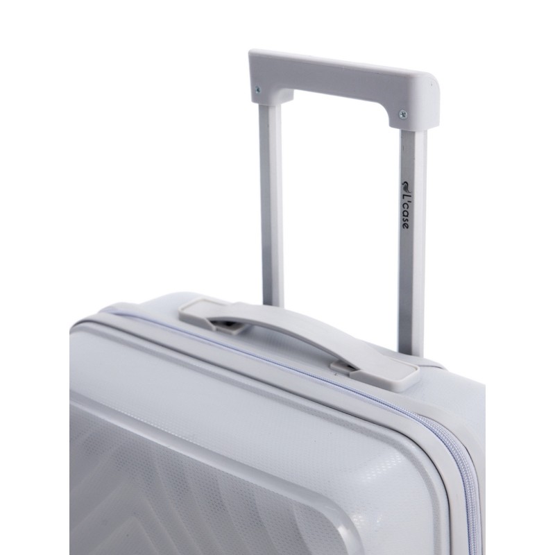 Материал корпуса – полипропилен, двойные колеса с локерами и ходовой частью из полиуретана, алюминиевые телескопические направляющие с восьмью гранями для усиления прочности, фиксируются в 3-х положениях.