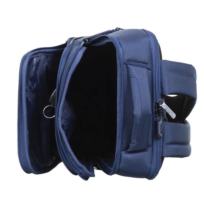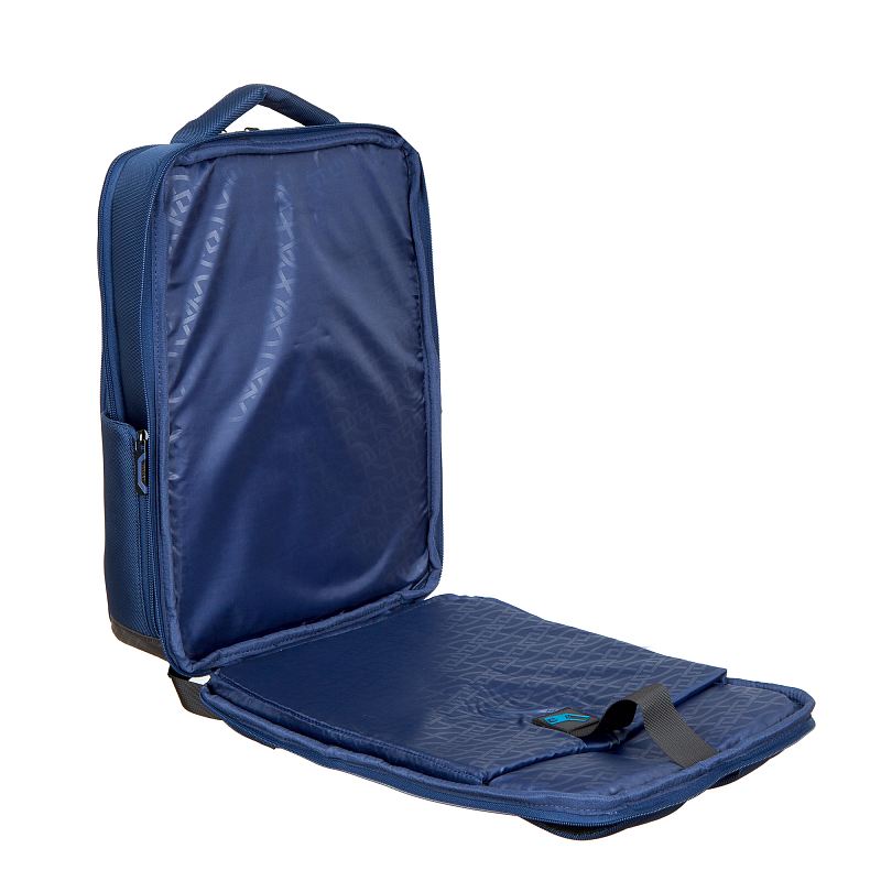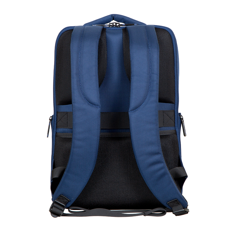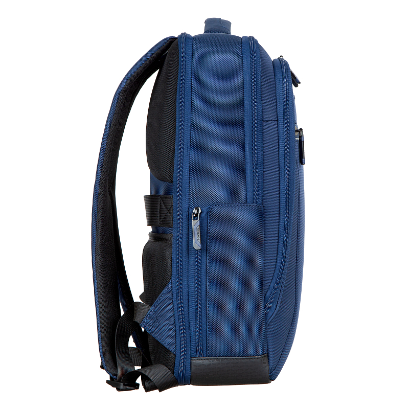 Городской рюкзак с ортопедической спинкой. Выполнен из полиэстера, обладает износостойкими характеристиками и не боится влаги и дождя, подкладка рюкзака антибактериальная. Состоит из двух независимых отделений на молниях. В главном отделе расположены карман на молнии и карман для мелких предметов. Во втором отделе мягкий карман для планшета или ноутбука на липучке. На лицевой стороне световозвращаюшая вставка, два глубоких кармана на молниях, внутри которых два кармашка для мелких предметов, два держателя для авторучек и съёмное кольцо для ключей. На внутренней стороне потайной карман на молнии. Рюкзак оснащён верхней ручкой для удобства временного переноса, эргономичными регулирующимися лямками, креплением на ручку чемодана, анатомической спинкой с мягкими подушками системы Airstripes, благодаря которым повторяет изгибы спины, равномерно распределяя нагрузку на позвоночник. По бокам карманы на молниях с увеличением, для бутылки воды или зонта. Дно рюкзака покрыто специальной защитой от царапин.