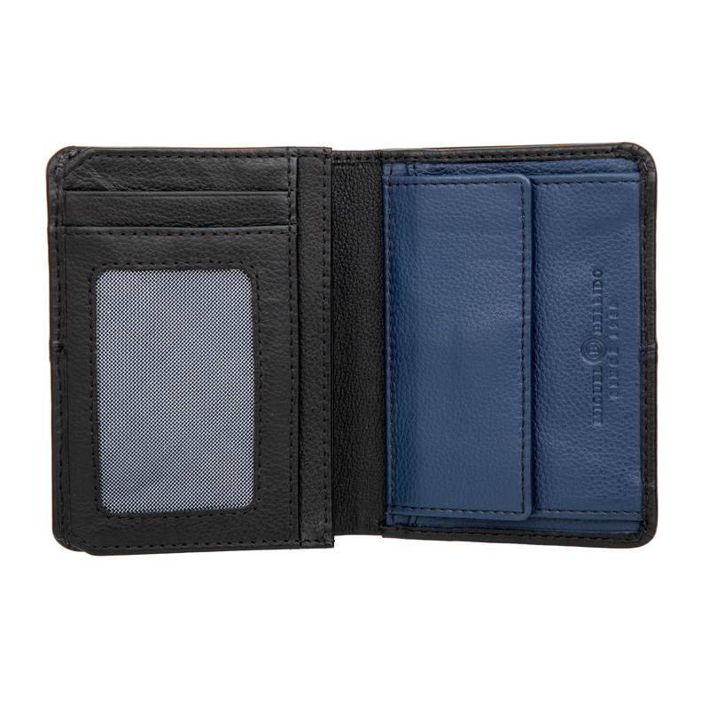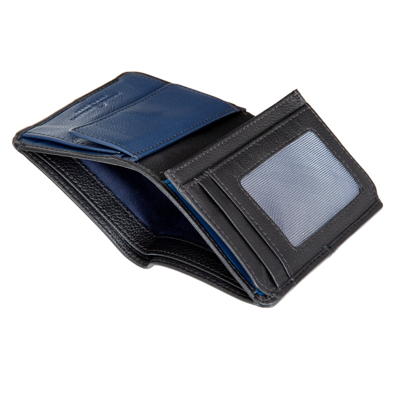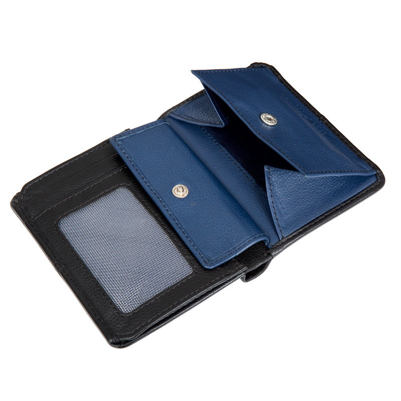 • Модель 2024года. Раскладывается пополам, внутри два отделения для купюр, два потайных кармана, четыре отдела для банковских или дисконтных карт, два сетчатых отделения. отдел для монет на кнопке. RFID-защита  позволяет защитить банковские карты от считывания.