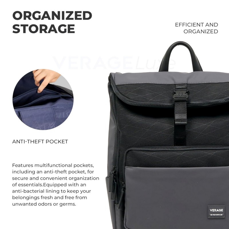 Новинка от VERAGE. Рюкзак класса Luxe, закрывается на надежную молнию типа “трактор” и дополнительно металлическую застежку, выполнен из полиэстера 2520D+PU покрытие, не боится влаги и дождя. Благодаря конструкции, высоту возможно увеличить до 53 см.