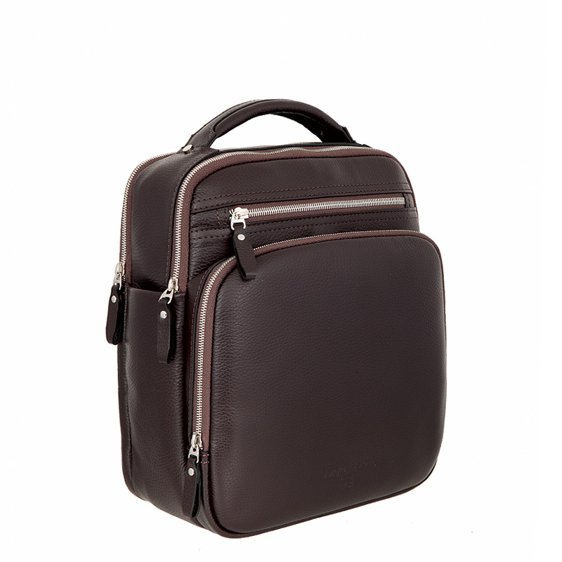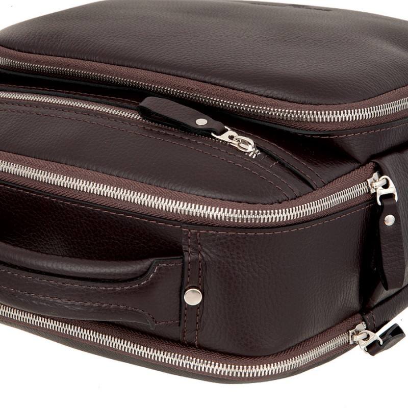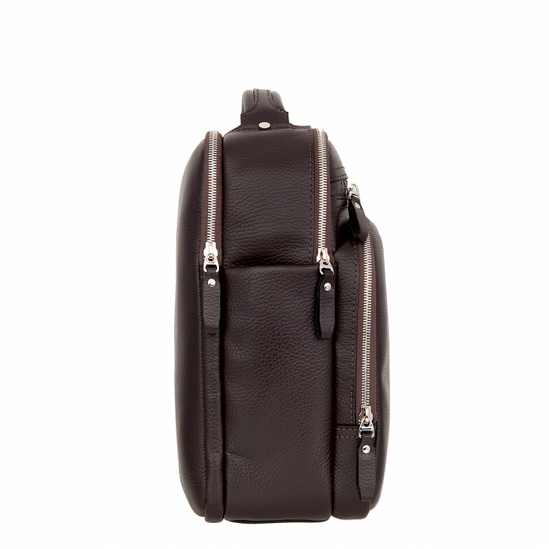 - Классический мужской планшет тёмно-коричневого цвета из мягкой натуральной кожи зернистой фактуры. Два независимых отделения, основное большое на молнии и отделение с карманом для документов на молнии. Снаружи на лицевой стороне два кармана на молниях. По бокам открытые кармашки для мелких предметов. Планшет оснащён удобной верхней ручкой и съёмным регулируемым плечевым ремнём на карабинах.
