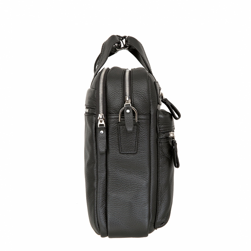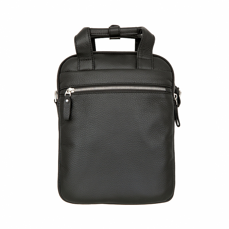• Классический мужской планшет тёмно-коричневого цвета из мягкой натуральной кожи зернистой фактуры. Два независимых отделения, в первом отделении 2 кармашка для мелких предметов, карман для планшета, во втором отделении карман для документов на молнии. Снаружи на лицевой стороне два кармана на молниях, на задней стенке карман на молнии, оснащён удобной верхней ручкой и съёмным регулируемым плечевым ремнём на карабинах. Цвет фурнитуры - серебро.
