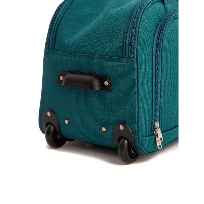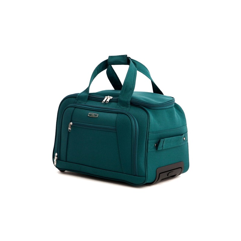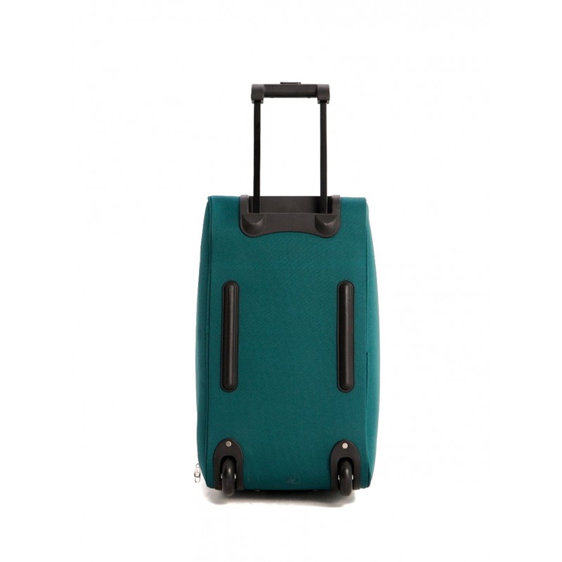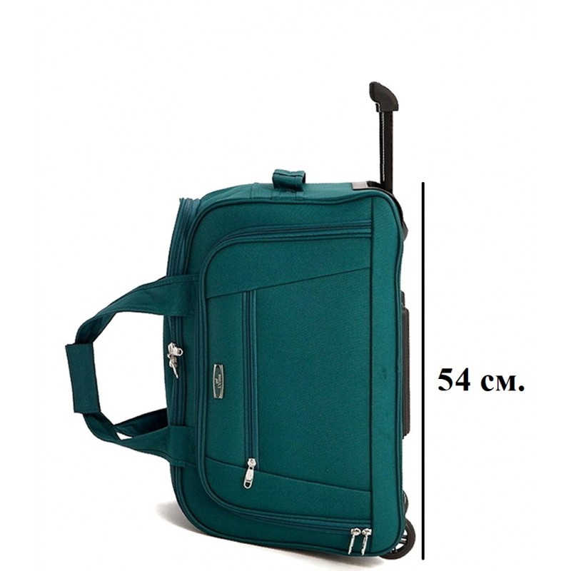Дорожная сумка на колесах из полиэстера 1200 DEN с выдвижной ручкой, фиксируется в трех положениях. Ручка для переноски сбоку, ручка для переноски сверху (соединяется клапаном на липучке), пластиковая ручка сбоку для переноски двумя руками, служит опорой при вертикальном расположении. Закрывается на двустороннюю молнию шириной 10 мм., комплектуется навесным замком с ключом. Внутри большой отдел для багажа, два кармана для мелочей, снаружи на передней стенке большой отдел на молнии с карманом на молнии. Снаружи дно защищено пластиковыми направляющими, колеса шириной 2,2 см., диаметром 7,2 см., на шарикоподшипниках.
