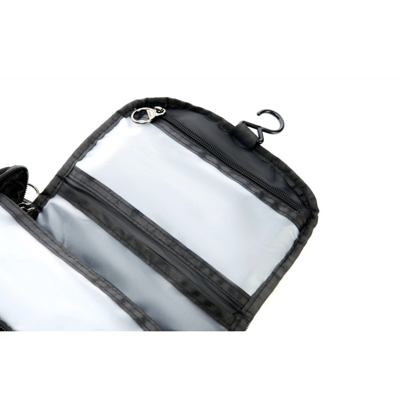 - Несессер дорожный, предназначен для перевозки и хранения косметики, бритвенных принадлежностей и прочих предметов личной гигиены. Закрывается на молнию, внутри: большое отделение с двумя сетчатыми карманами, непромокаемый отдел на молнии, на крышке непромокаемый отдел на молнии и отдел для зубной щетки, держатель для подвешивания. Верхняя ручка для переноски, ремень для крепления ручку чемодана и.т.п.