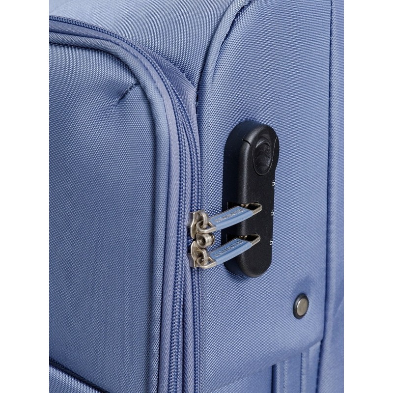 • Четыре высокоманевренных колеса с покрытием из полиуретана, накладной кодовый замок. Защита верхних углов и нижней части от потертостей, вшитая адресная бирка, возможность увеличения объема на 15%.