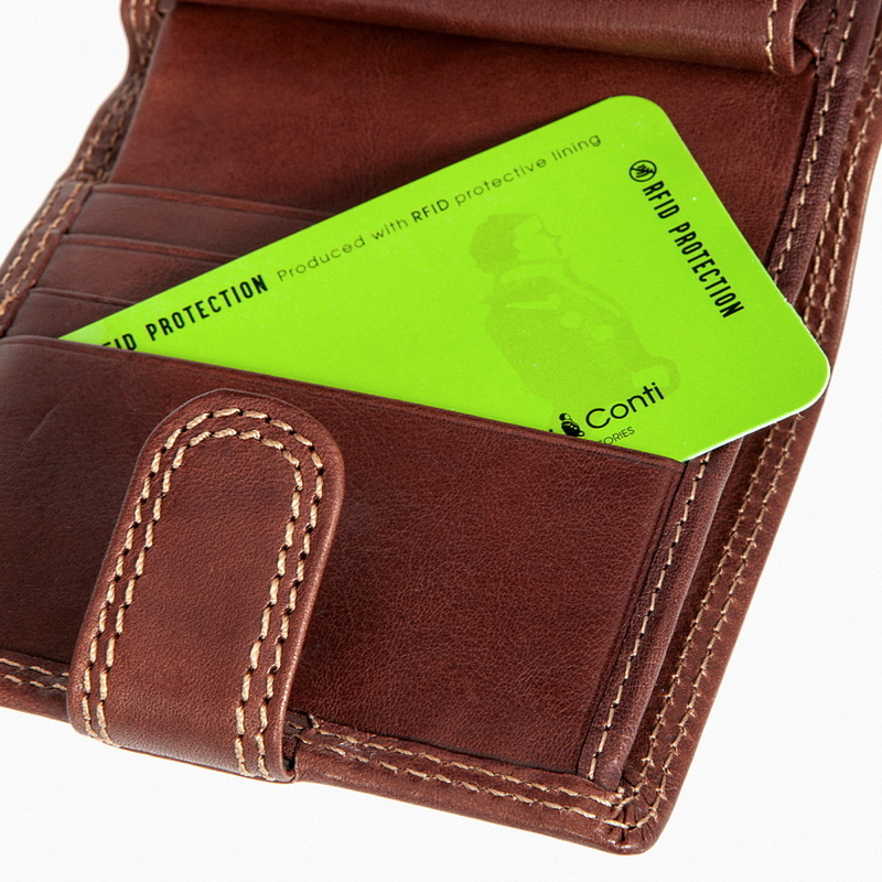 Наличие RFID Protection (защита от считывания данных с банковских карт). К изделию прилагается сертификат производителя с индивидуальным номером, гарантирующий уникальность ручного дубления кожи с использованием извлеченных из растений танинов без применения искуственных красителей (см. фото).