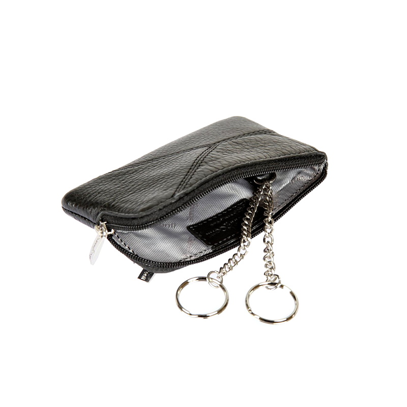 Футляр закрывается на молнию. Внутри отдел с двумя кольцами для ключей. Снаружи на задней стенке отдел на молнии.