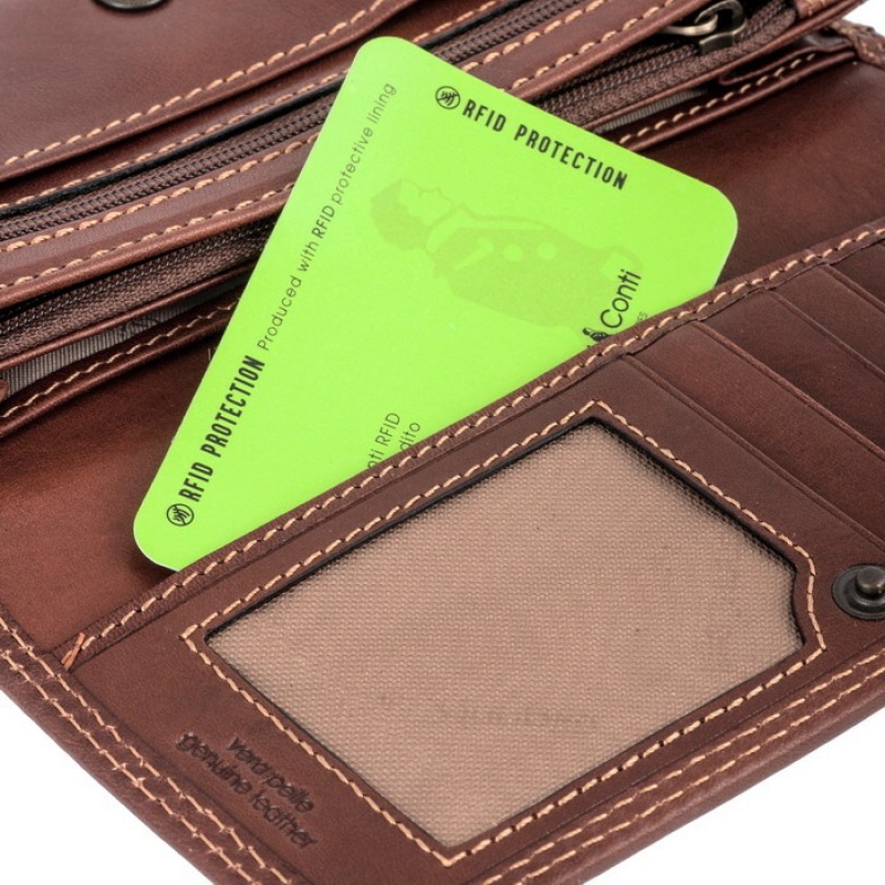 • Кошелек из натуральной кожи VACHETTA высшего качества. Закрывается клапаном на кнопке, внутри два отдела для купюр, три отдела для документов (два из них на молнии), отдел для монет на молнии, отдел для мелких предметов, шесть слотов для банковских карт, сетчатый кармашек, снаружи на задней стенке отдел на молнии и отдел для документов.