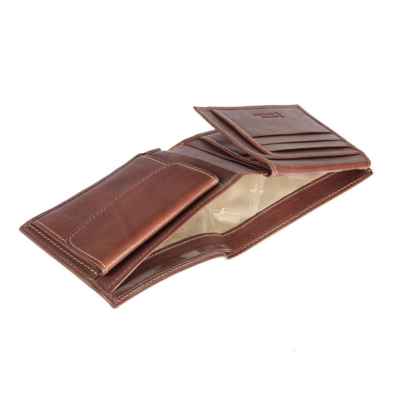 • Портмоне из натуральной кожи VACHETTA высшего качества. Раскладывается пополам, внутри два отдела для купюр, отделение для монет на кнопке, два потайных кармана, три кармана для документов, семь слотов для банковских карт, сетчатый карман.