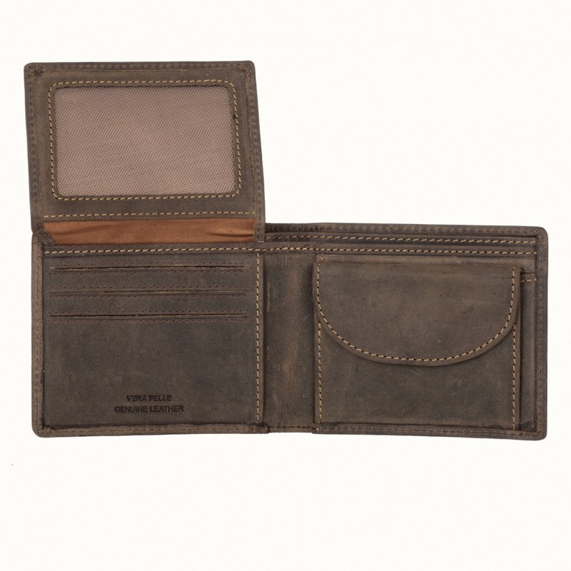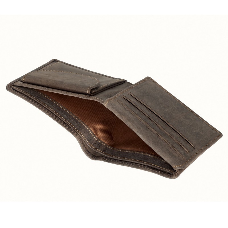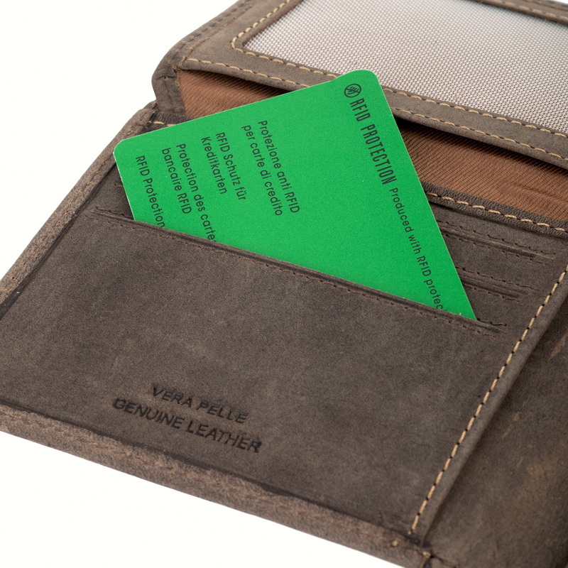 • Портмоне из натуральной замши. Раскладывается пополам, внутри два отдела для купюр, отделение для монет на кнопке, два кармана для документов, шесть отделений для банковских или дисконтных карт, сетчатый отдел. Наличие RFID Protection (защита от считывания данных с банковских карт).