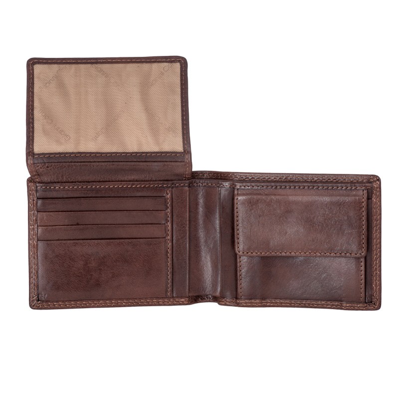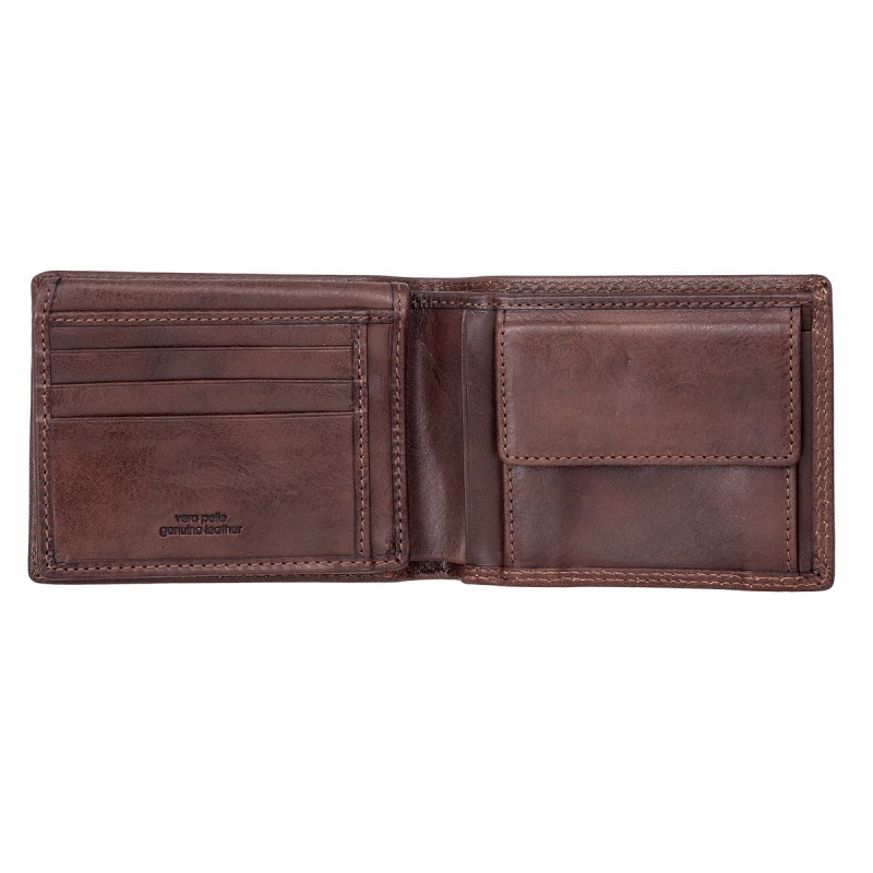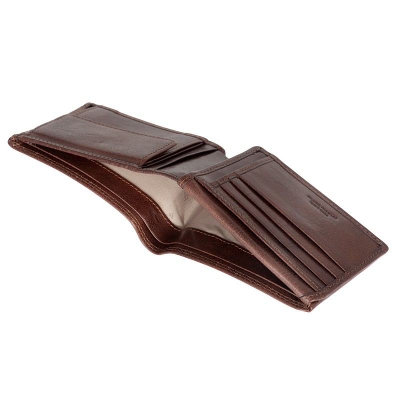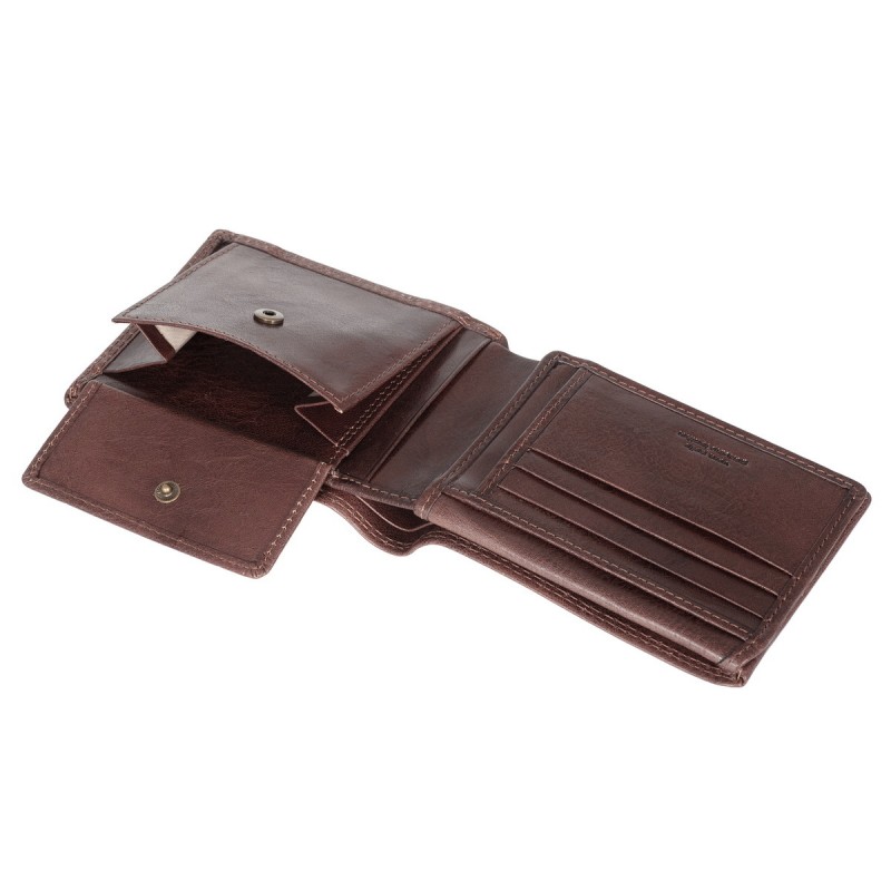 • Портмоне из натуральной кожи VACHETTA высшего качества. Раскладывается пополам, внутри два отдела для купюр, отделение для монет на кнопке, два потайных кармана, три кармана для документов, семь слотов для банковских карт, сетчатый карман.