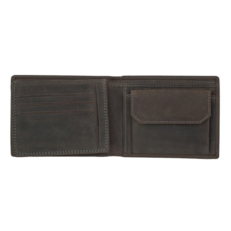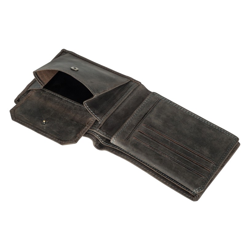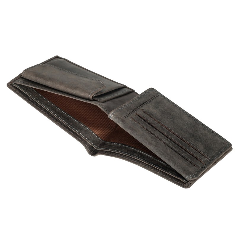 • Портмоне из натуральной замши. Раскладывается пополам, внутри два отдела для купюр, отделение для монет на кнопке, три кармана для документов, потайной отдел, семь отделений для банковских или дисконтных карт, сетчатый отдел. Наличие RFID Protection (защита от считывания данных с банковских карт).