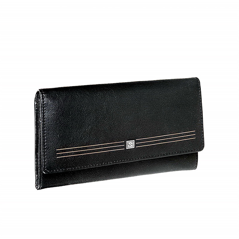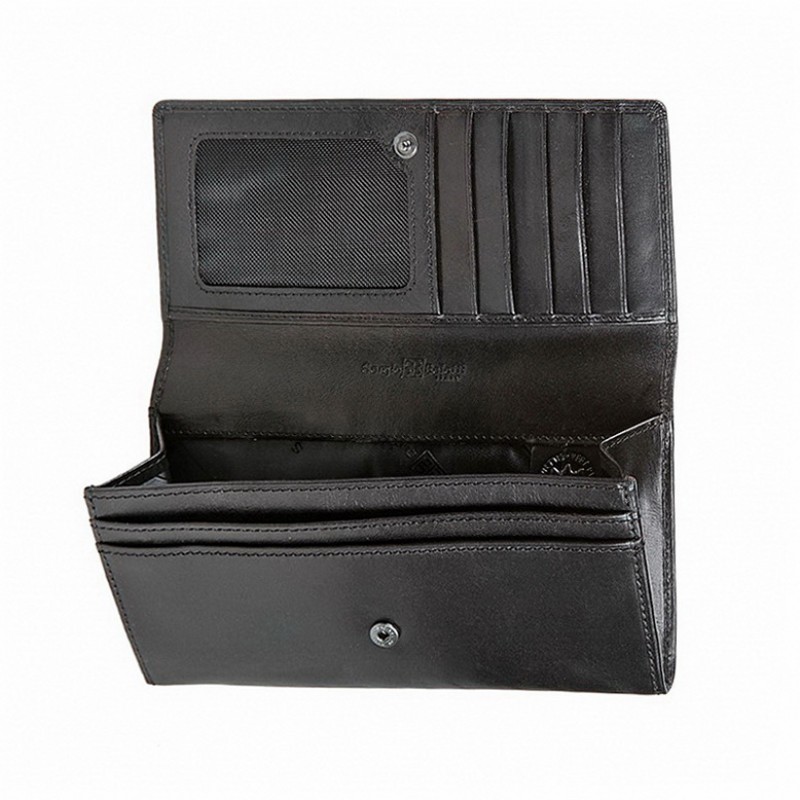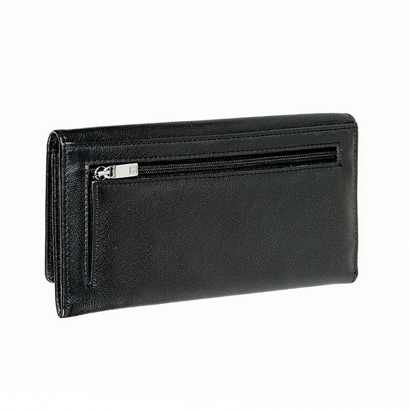 • Закрывается клапаном на кнопке, внутри три отделения для купюр, отделение для документов, шесть слотов для банковских или дисконтных карт (один из них сетчатый). Снаружи на задней стенке отдел для монет на молнии и отдел для мелких предметов.