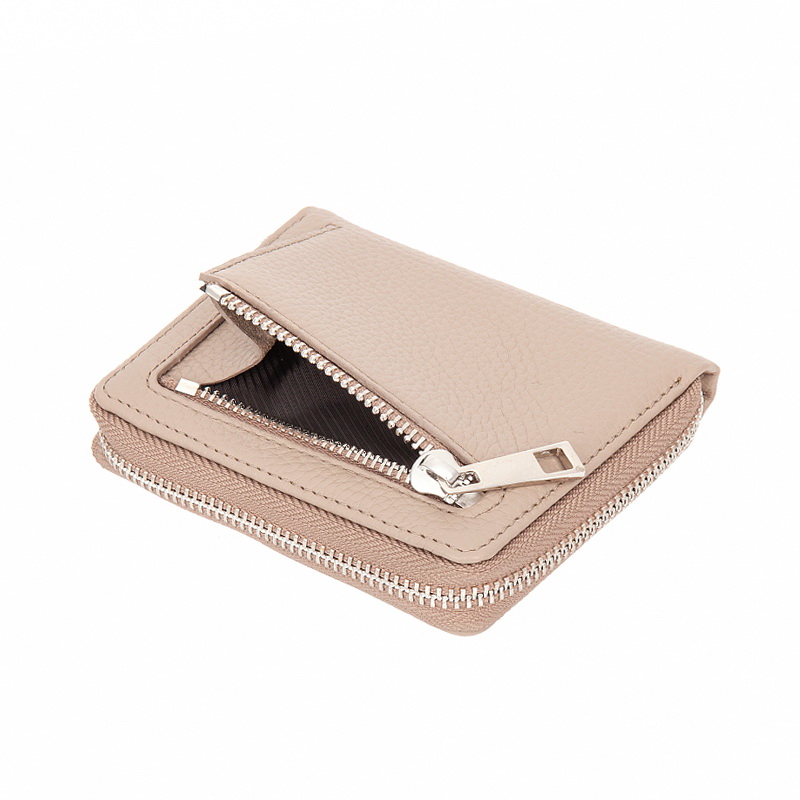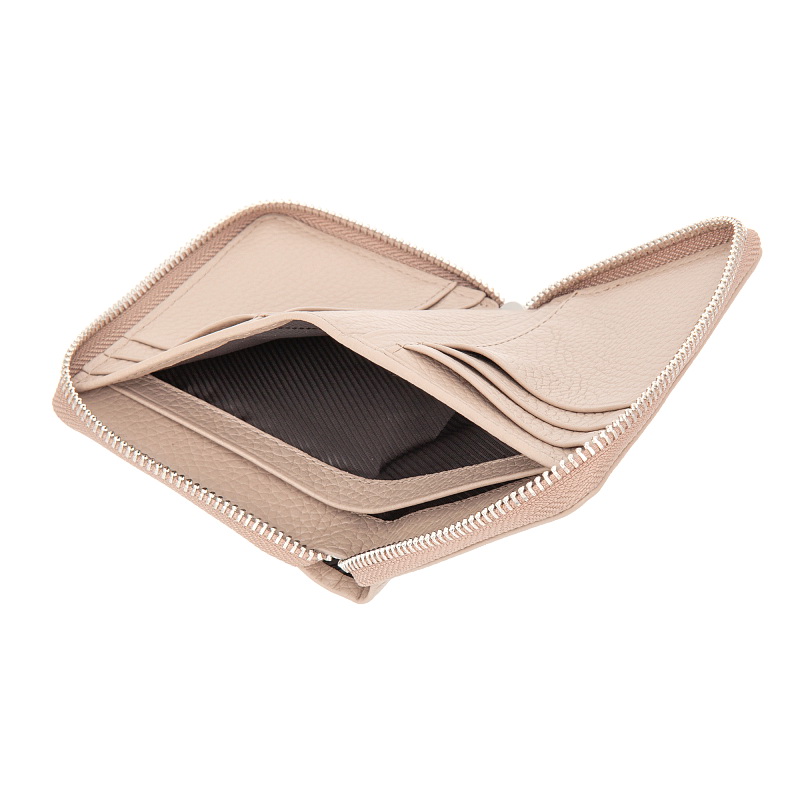 • Раскладывается пополам, закрывается на молнию. Внутри два отделения для купюр, восемь слотов для банковских или дисконтных карт, два потайных кармана, с внешней стороны на задней стенке отделение для монет на молнии.