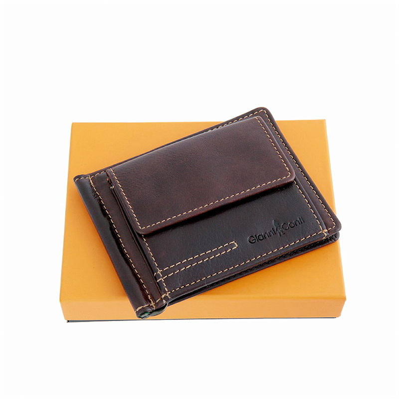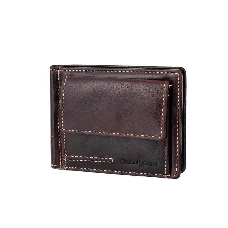 • Зажим для купюр Gianni Conti. Раскладывается пополам. Внутри: металлический зажим, четыре слота для банковских или дисконтных карт. Снаружи: карман для монет на кнопке.