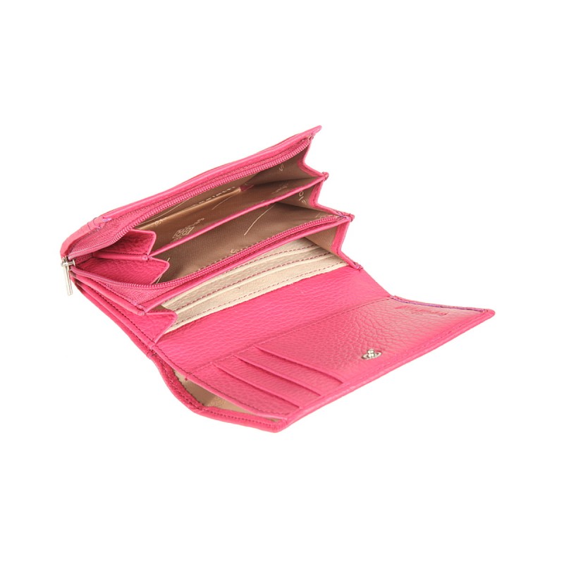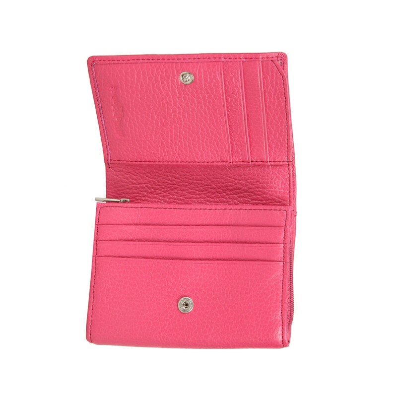 Внутри отделение для купюр, двойной карман для монет на молнии, отдел для мелких предметов, 10 слотов для банковских или дисконтных карт. Закрывается широким клапаном на кнопке. Снаружи на тыльной стенке потайной карман.