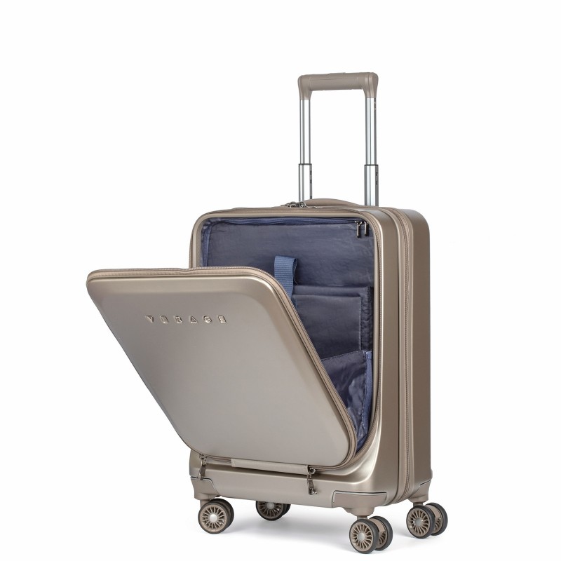 Чемодан поликарбонат "Verage" коллекция LEADER, цвет шампань, ручная кладь S+ (40/50л)