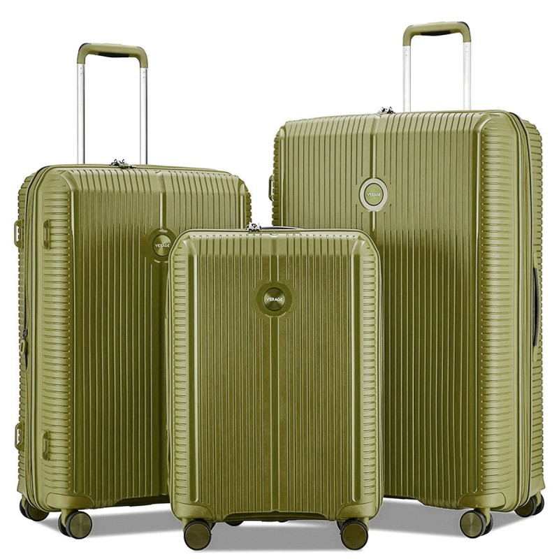 Комплект чемоданов 100% полипропилен "Verage" ROME, хаки металлик, размеры (S+/M/L) -20% Продано