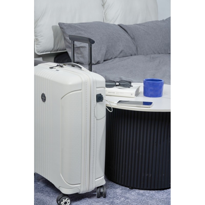 Наружный вывод с двумя разъемами USB TYPE-C и USB TYPE-A с внутренним подключением для power bank, и.т.п. Функция увеличения объема: + 25% объема для багажа, корпус закрывается на безопасную молнию DOUBLE SAFETY ZIPPER - двойная защитная молния (см.фото), дополнительно, при переполненном чемодане эта молния защищает от случайного открытия изнутри. Оригинальный кодовый замок TSA 008 нового поколения с защитой от взлома.