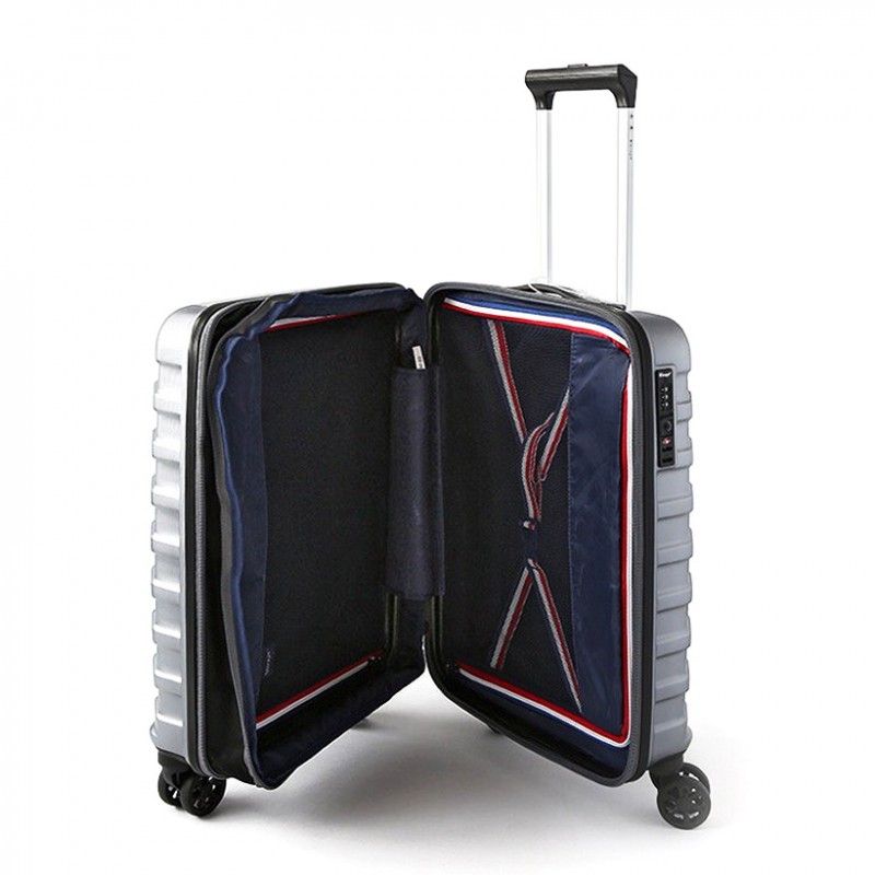 4 двойных, бесшумных колеса оборотом 360°. Диаметр колес увеличен до 5,7 см., встроенный кодовый замок с функцией "TSA" (досмотр багажа службой безопасности без повреждения чемодана)