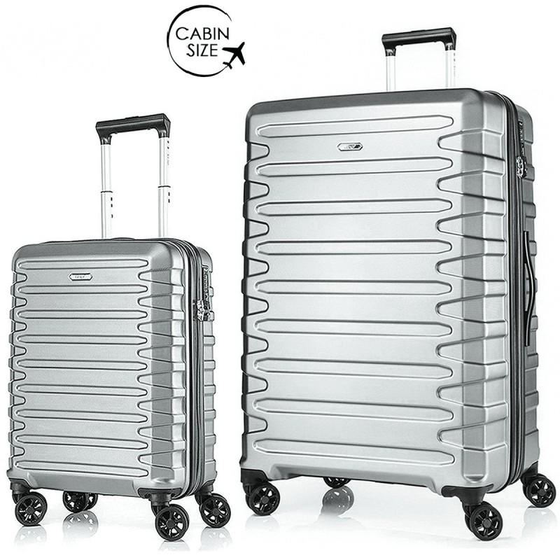 Комплект чемоданов поликарбонат S-PET "Verage" серия CRUST, серебристый, размеры (S+/L)